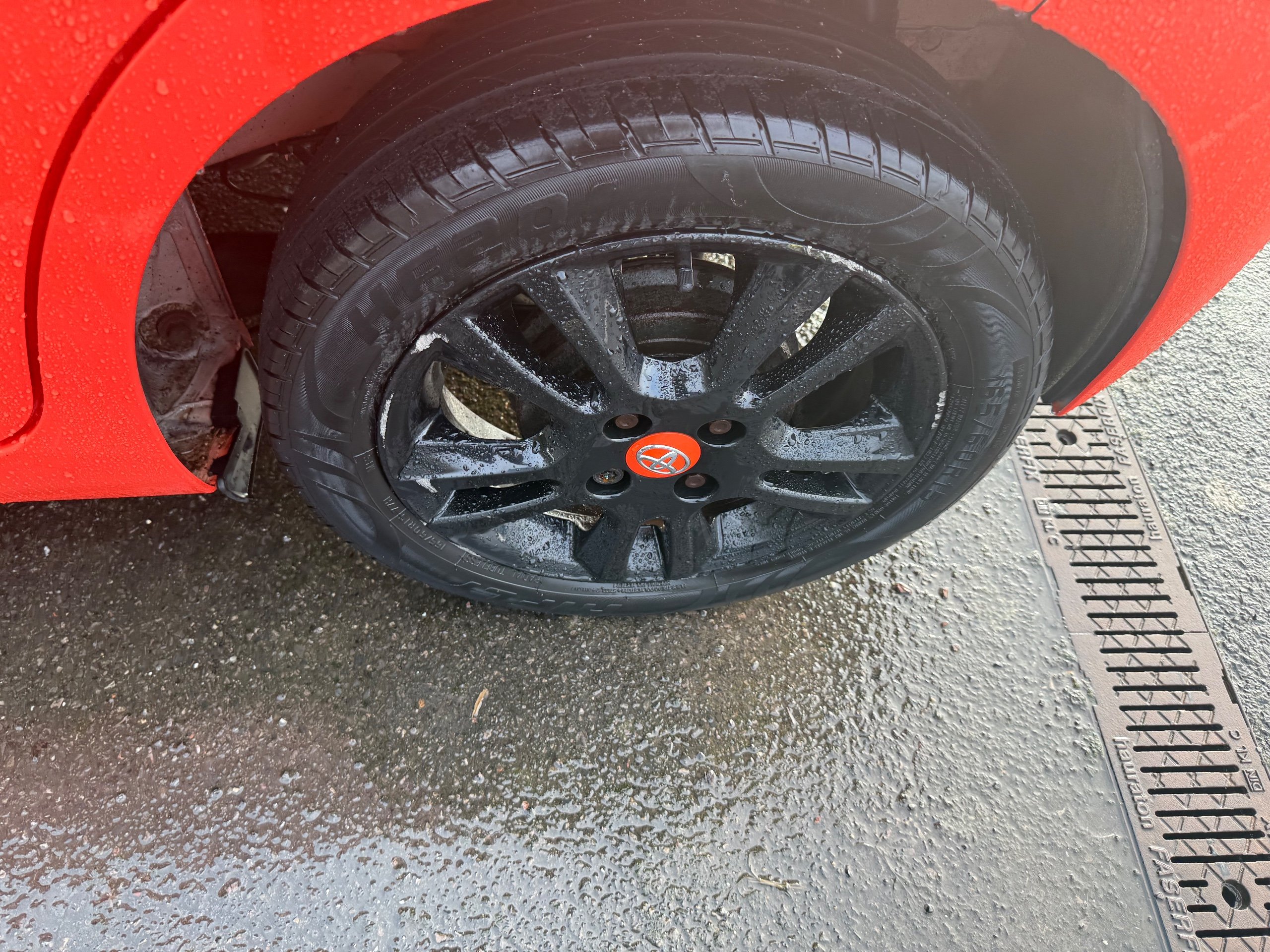 - 15in Alloy Wheels - 5 Double-Spoke - Gloss Black with Orange Centre Caps